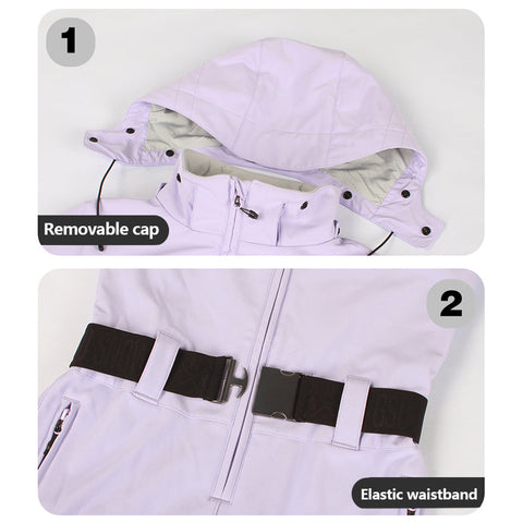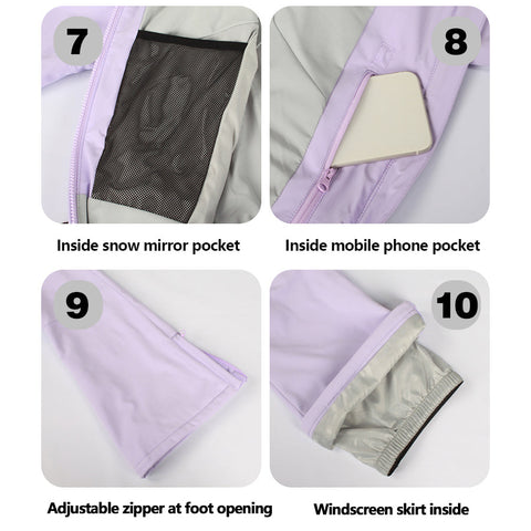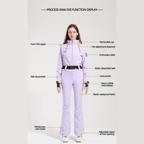 - With zip up design, 4-way stretch fabric, and adjustable belt closure, this ski suit for ladies caters to various waist and body size.