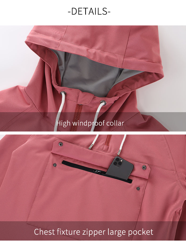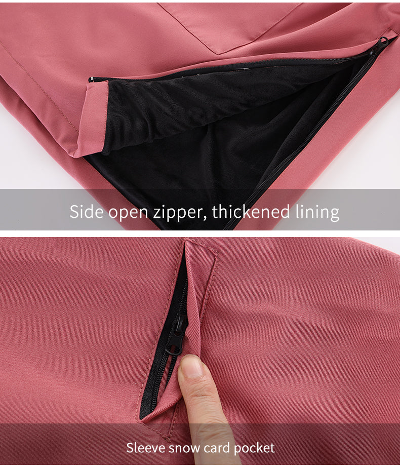 • Adjustable cuffs,stretchable glove hole help seal in warmth, Inside windproof snap powder skirt, adjustable storm hood help to keep wind out, Wear resisting soft shell is highly wind resistant.